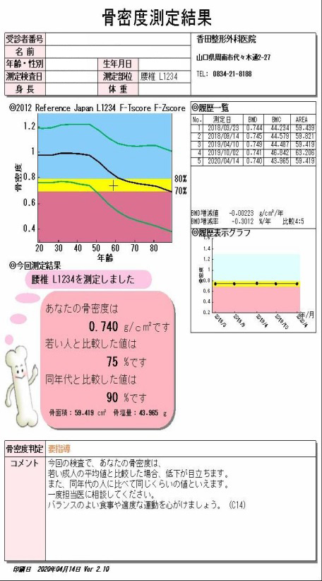 腰椎と股関節(大腿骨)を測定し、検査時間は約5分です。